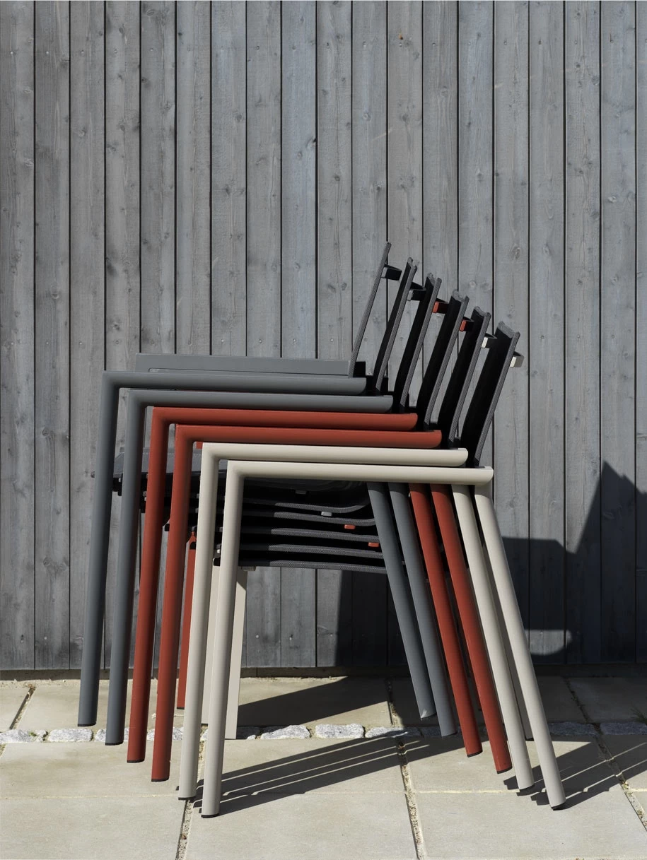 Der Lehnstuhl von Brafab hat ein stilvolles, stapelbares Design aus Aluminium mit breiten Latten, Armlehnen und ausgezeichnetem Sitzkomfort. Perfekt für den Patio oder die Terrasse.