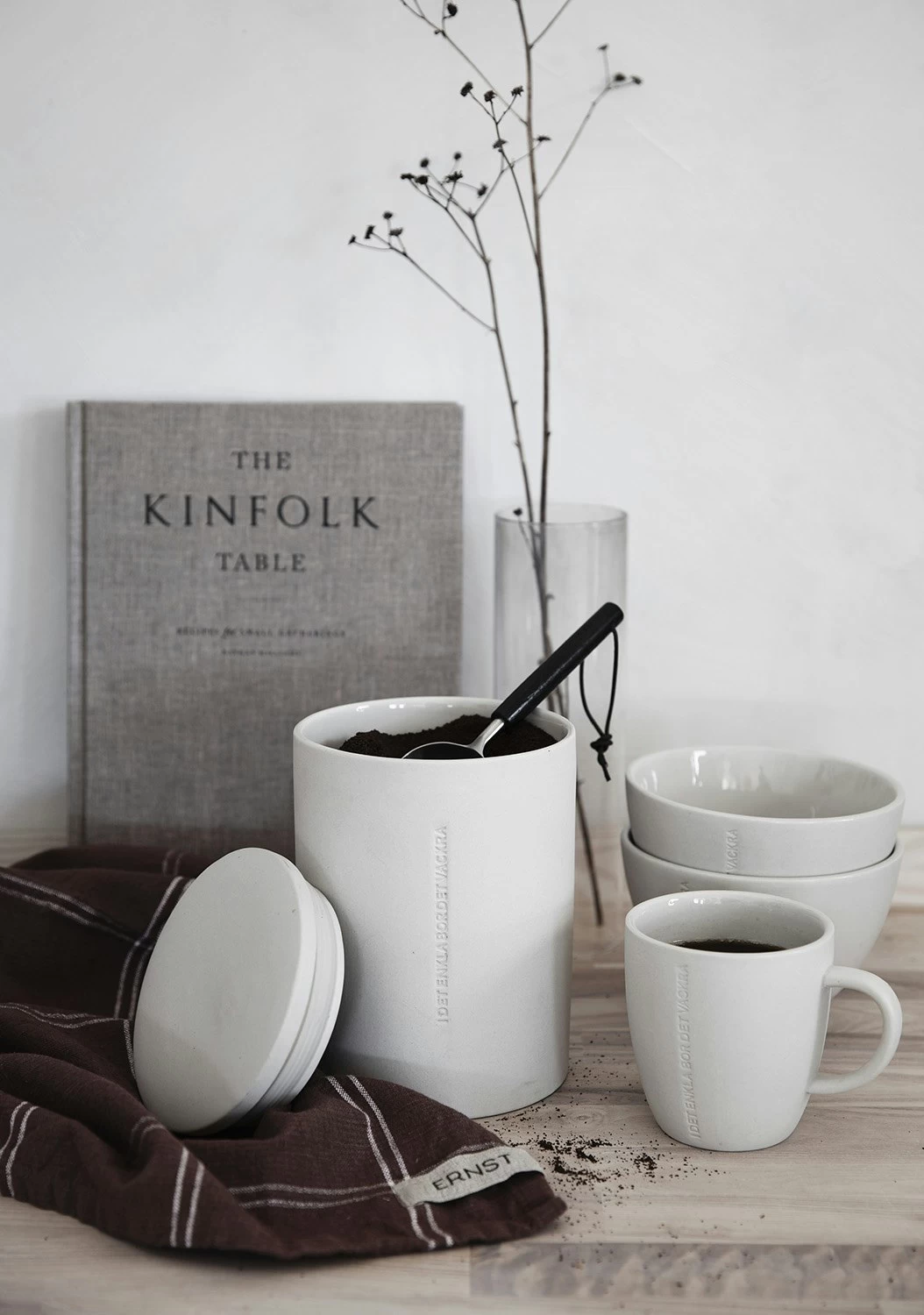 Die Ernst-Serie „I det enkle bor det vackra“ beinhaltet wunderschönes Geschirr, unter anderem dieses Vorratsglas mit Deckel in drei matten Farben. Perfekt für die Aufbewahrung von Kaffee, Tee oder Haferflocken.