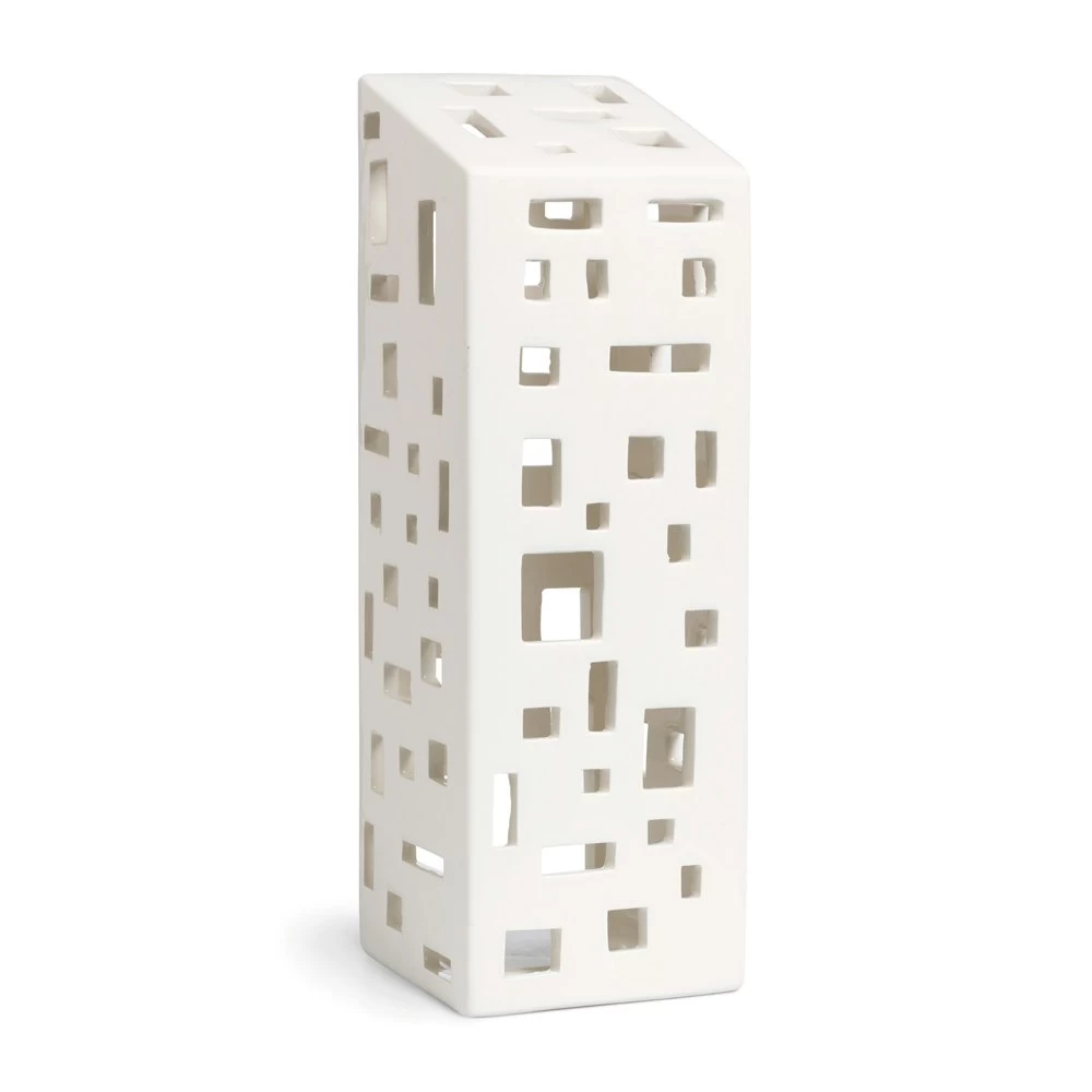 Ein Lichthaus das von modernen Hochhäusern inspiriert ist. Das Haus hat kleine handgeformte Fenster, die schöne Silhouetten und längliche Schatten werfen. Das Lichthaus ist Teil der Urbania Kollektion das fantastischeren Lichthäuser in verschiedenen Formen umfasst. Stelle dieses weiße Hochhaus als Einzelstück oder in Kombination mit mehreren Laternen der gleichen Kollektion auf den Tisch, die Kommode im Flur oder die Fensterbank. Weitere Lichthäuser sorgen für eine bezaubernde städtische Umgebung, die zu jeder Jahreszeit schön leuchtet und flackert.